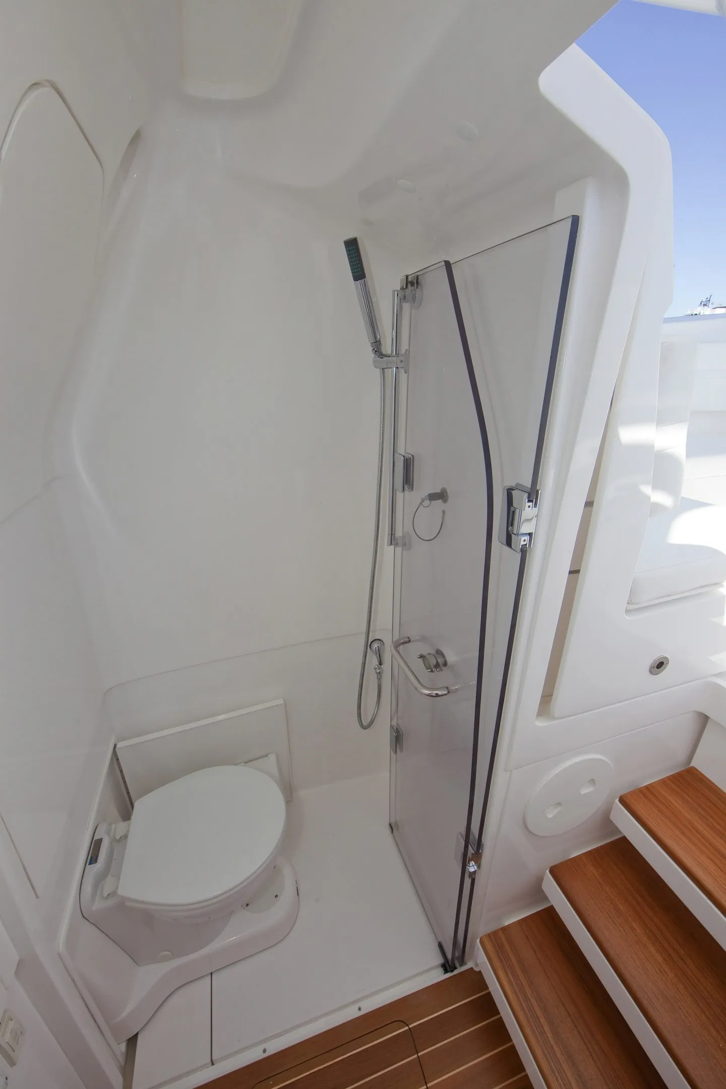 The 375’s elevated shear lines equip you with over 6 feet of headroom and the stepped hull design provides a smooth, dry, world-class ride.