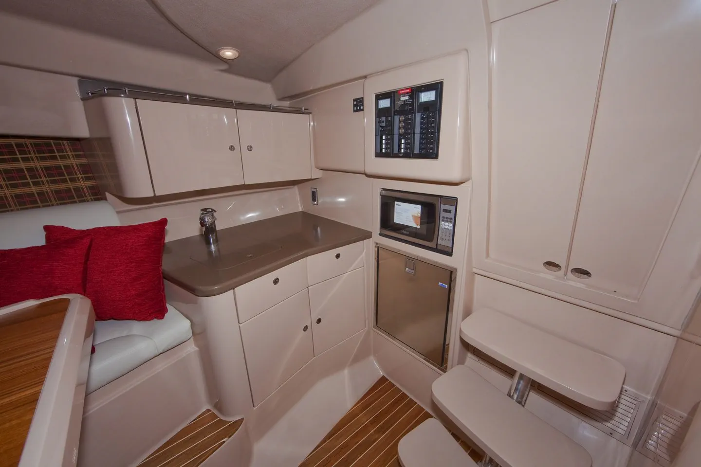The 375 Walkaround offers luxurious, spacious overnight accommodations with a full galley, and a convertible dinette-berth.