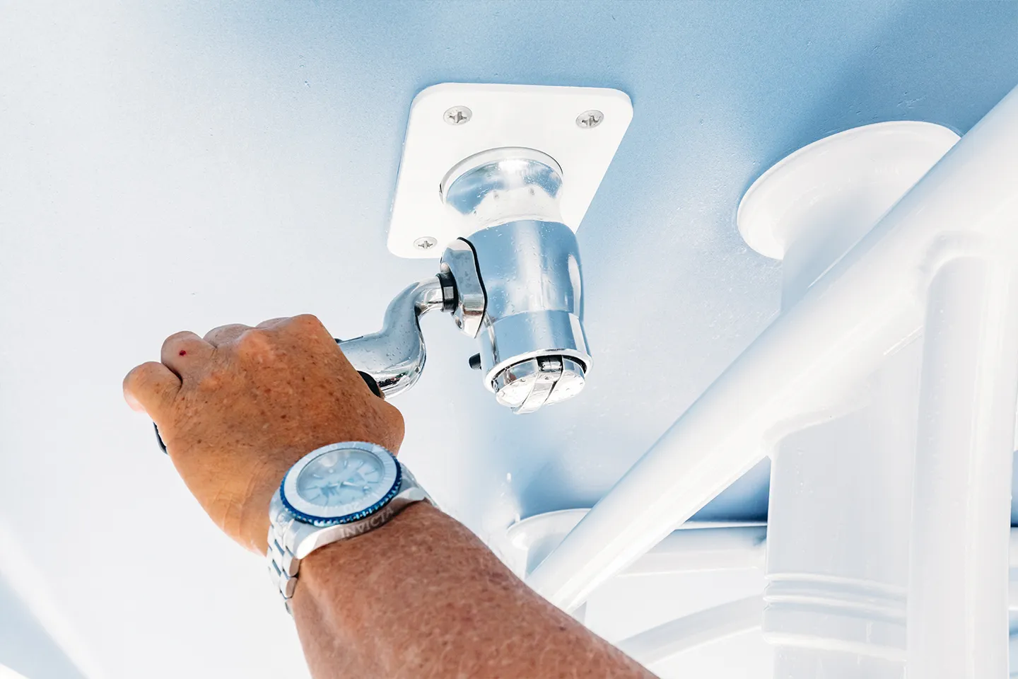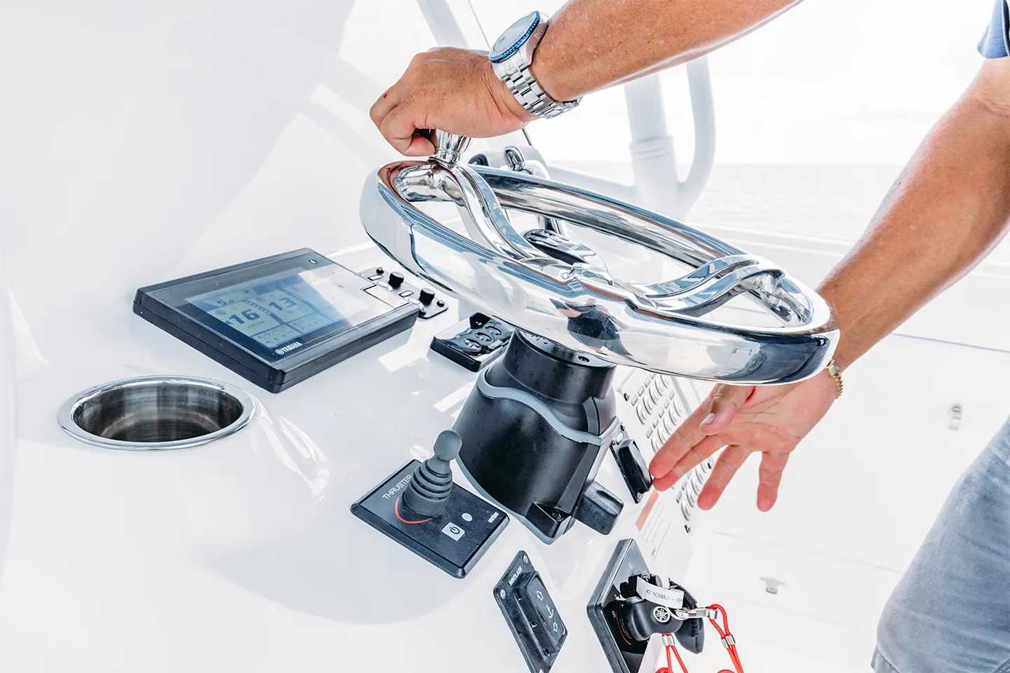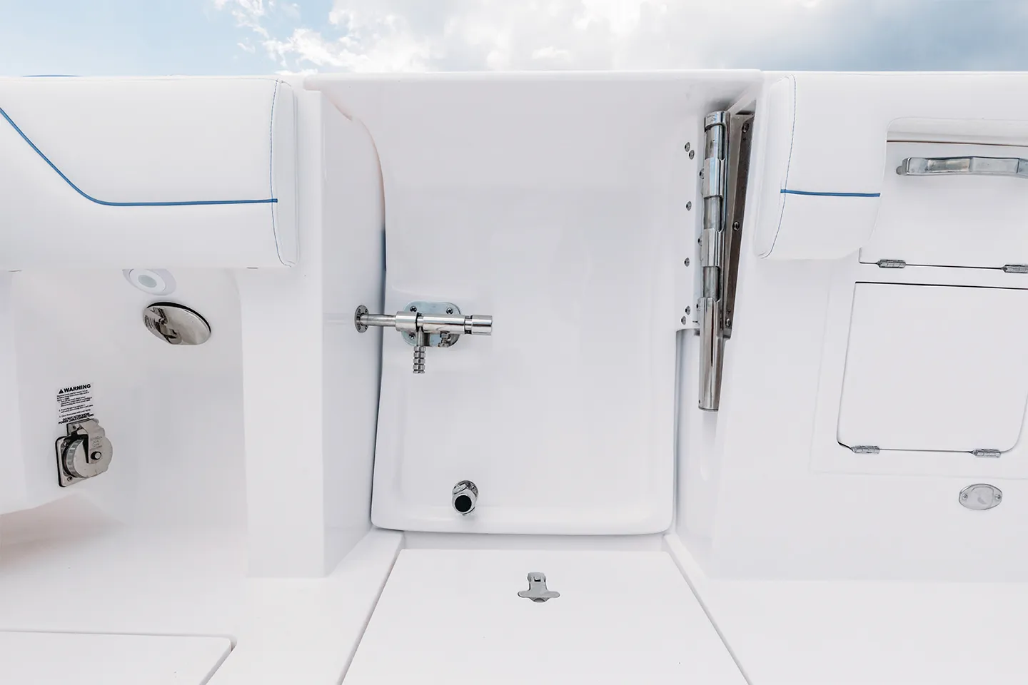 • HELM SEAT STATION FULLY CUSTOMIZABLE FOR FISHING OR ENTERTAINING TRANSOM SHOWER