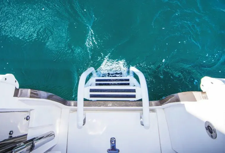 Standard dual dive platforms and boarding ladder fulfill the ‘means of solo re-boarding’ recommendation of the American Boat and Yacht Council, a safety essential other builders forego.