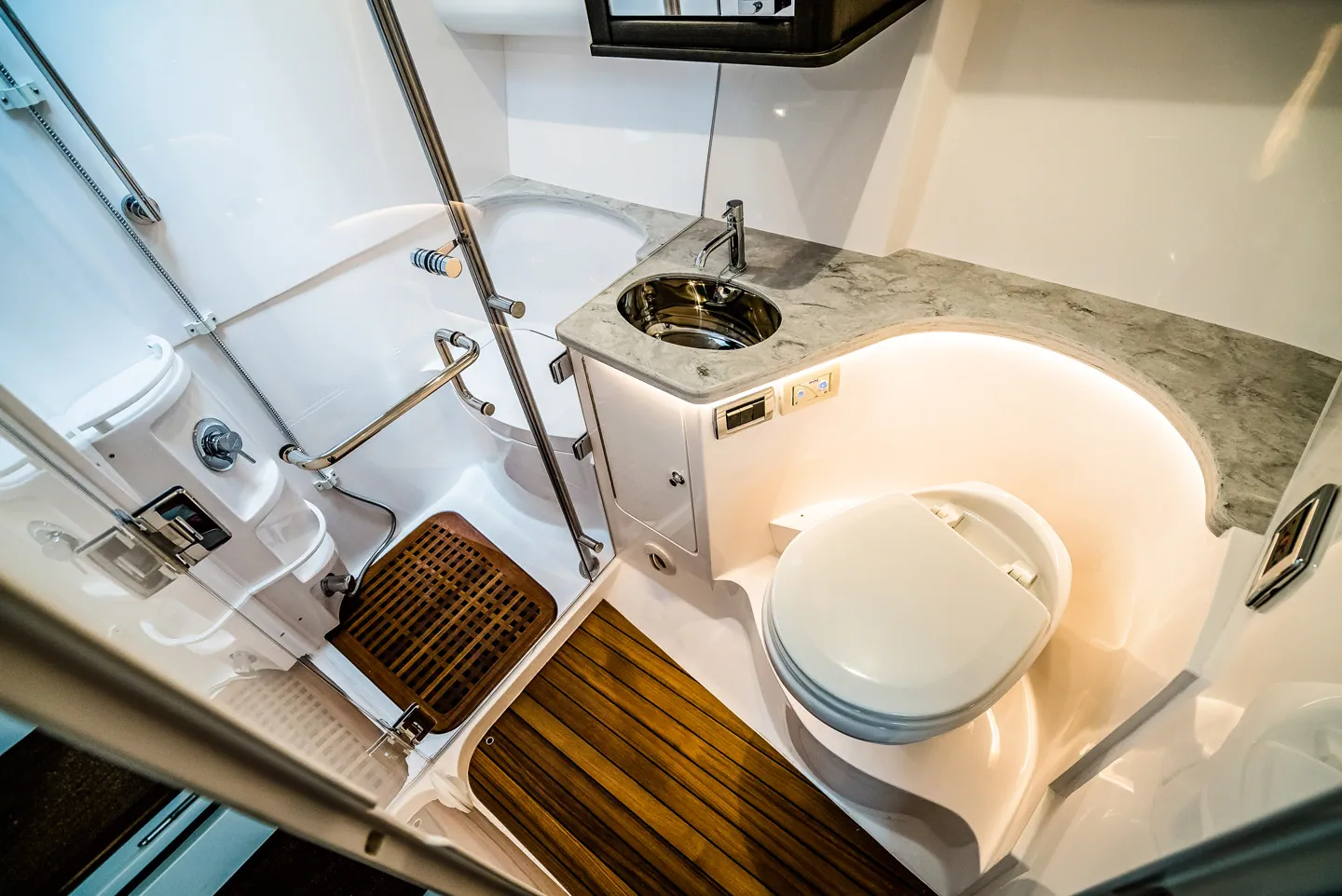 • Electric Head Fresh Water w/Holding Tank, Macerator and Overboard Pump out