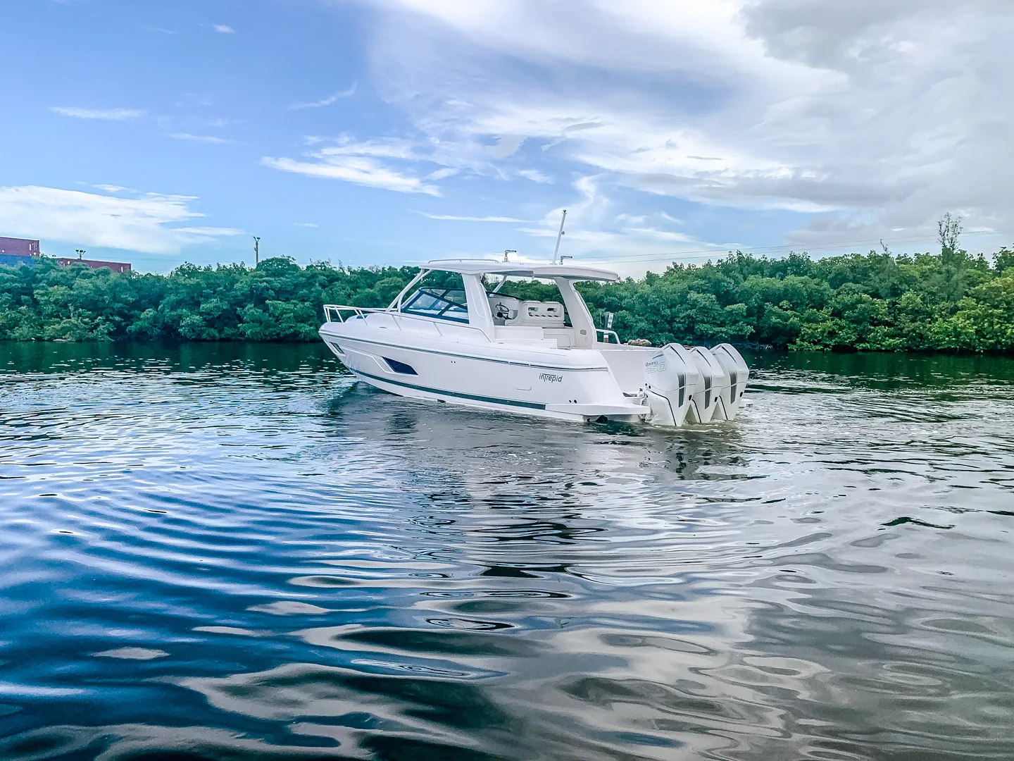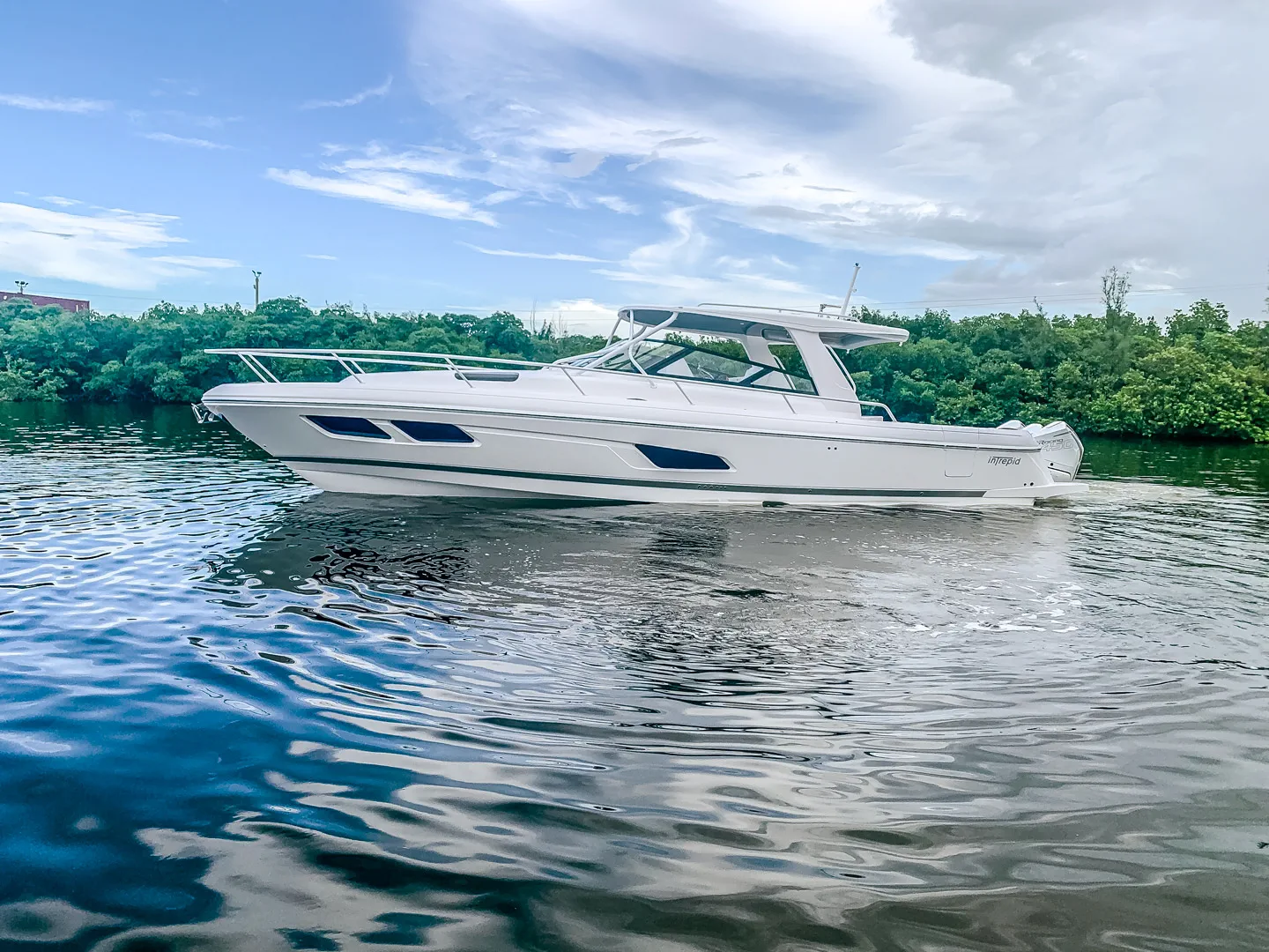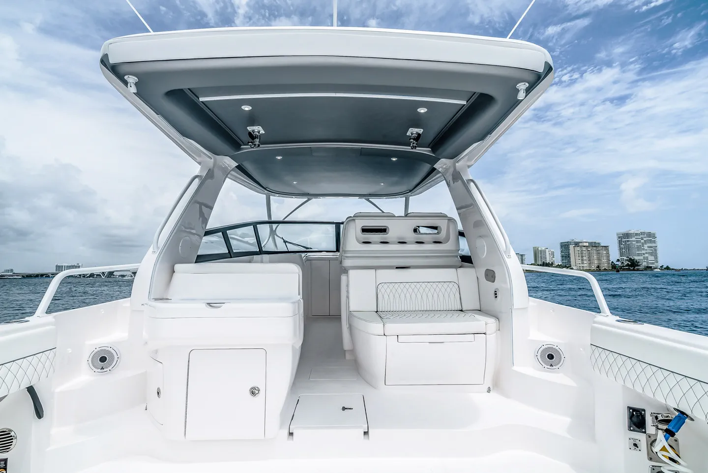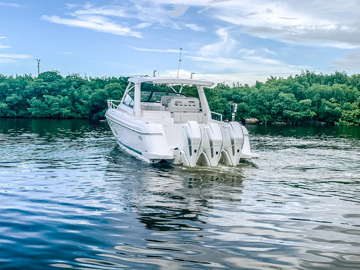 An amazingly versatile and powerful outboard sport yacht, the all-new 438 Evolution is a showcase of ingenious design innovations. Step aboard and you’ll take the helm of a powerful luxury cruiser unlike any other boat on the water, with a luxurious cabin perfectly suited for traveling in style.