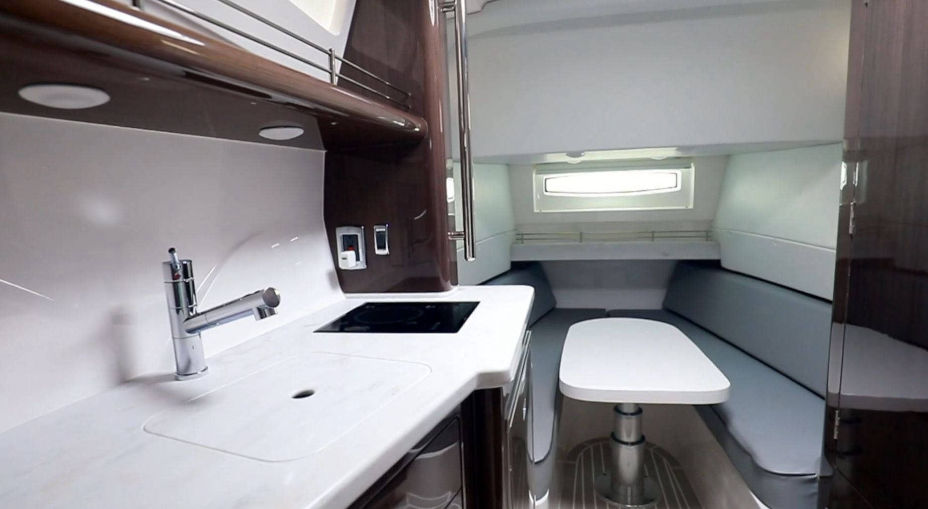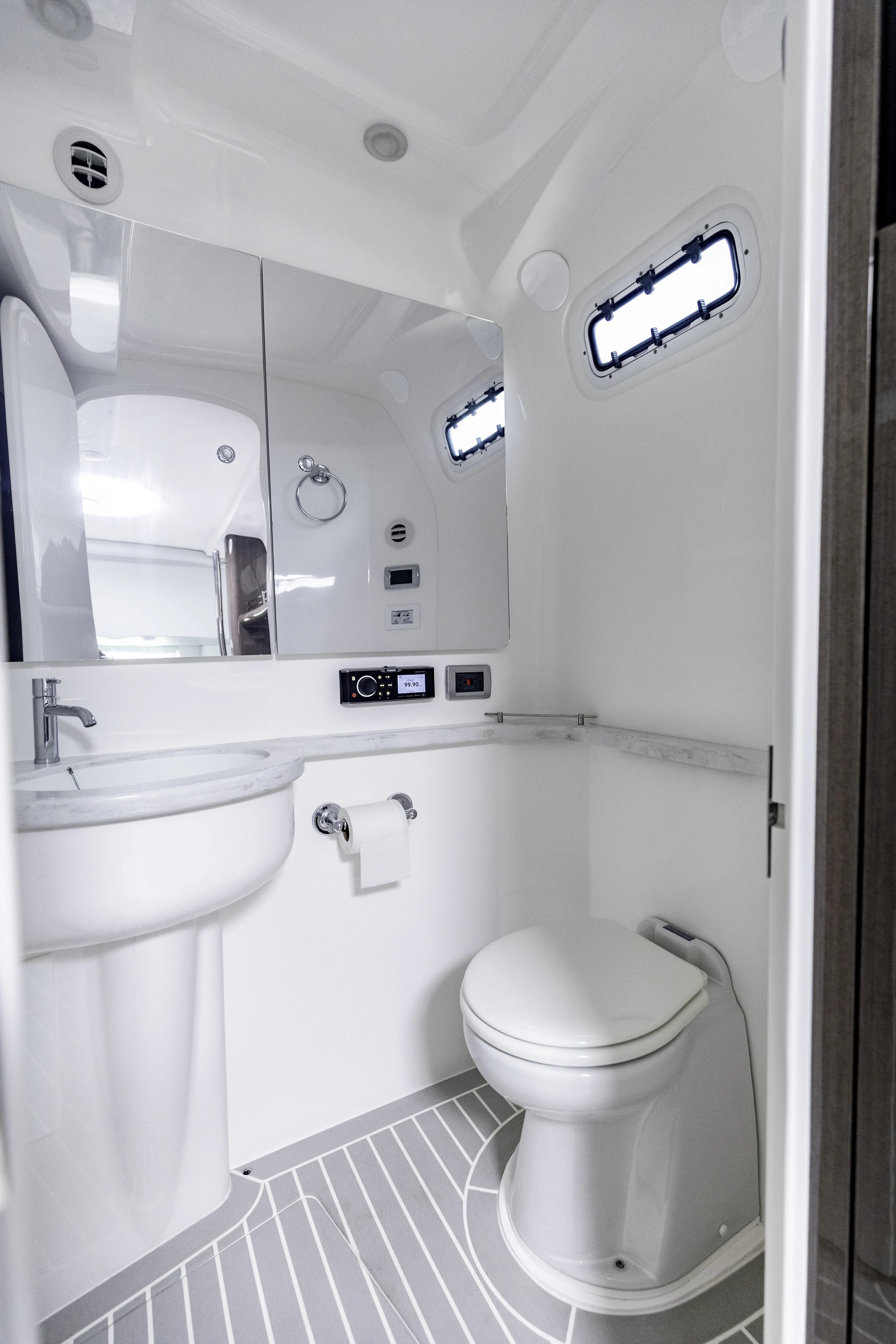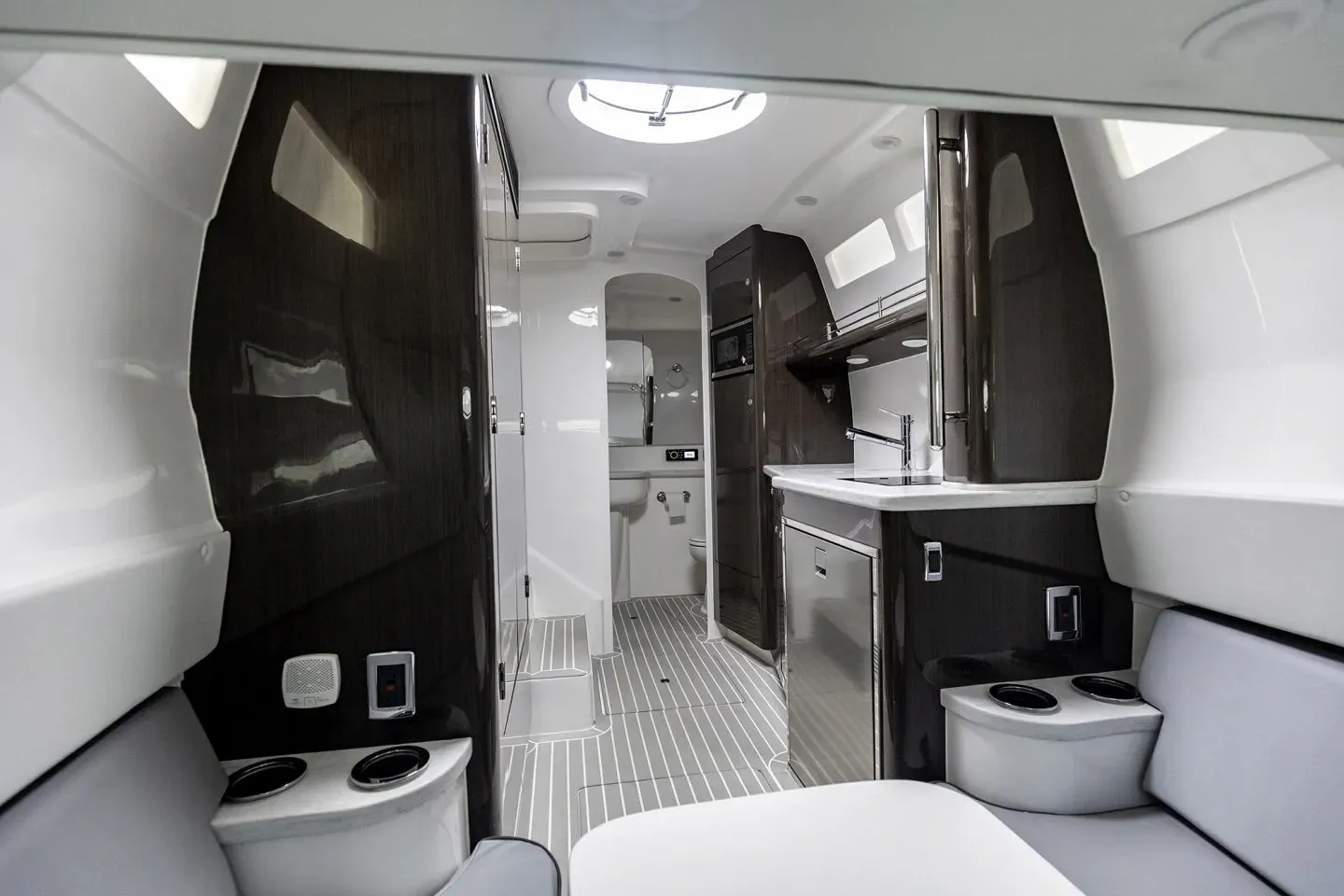 sink and high-end cabinetry and a spacious V-berth for luxurious accommodations.