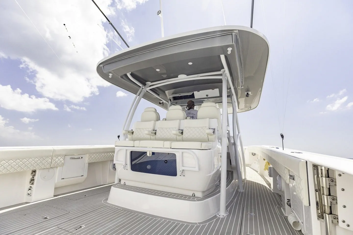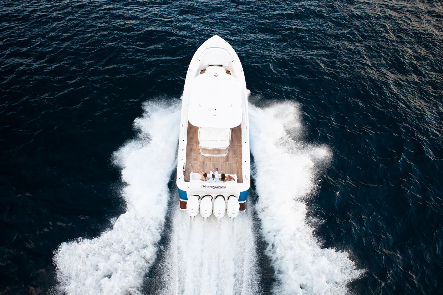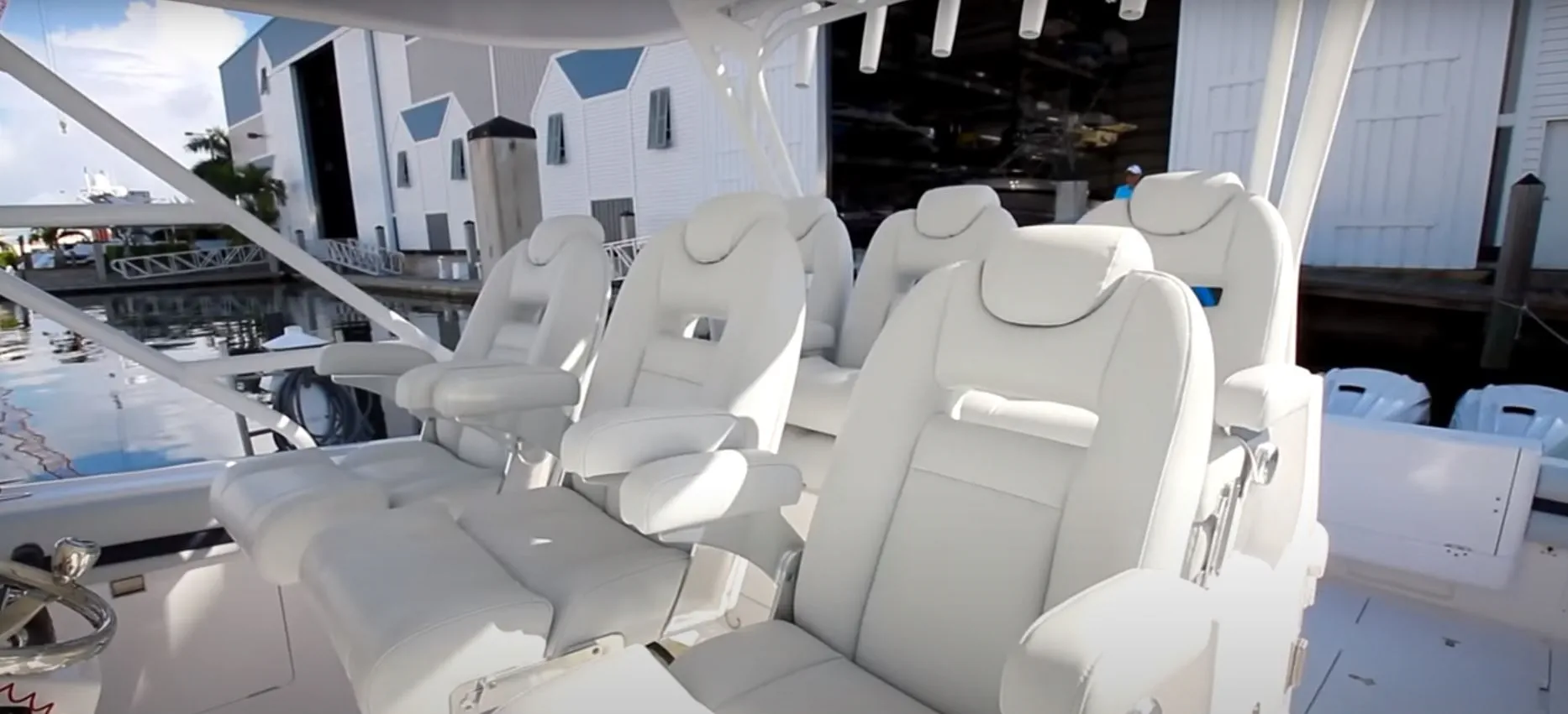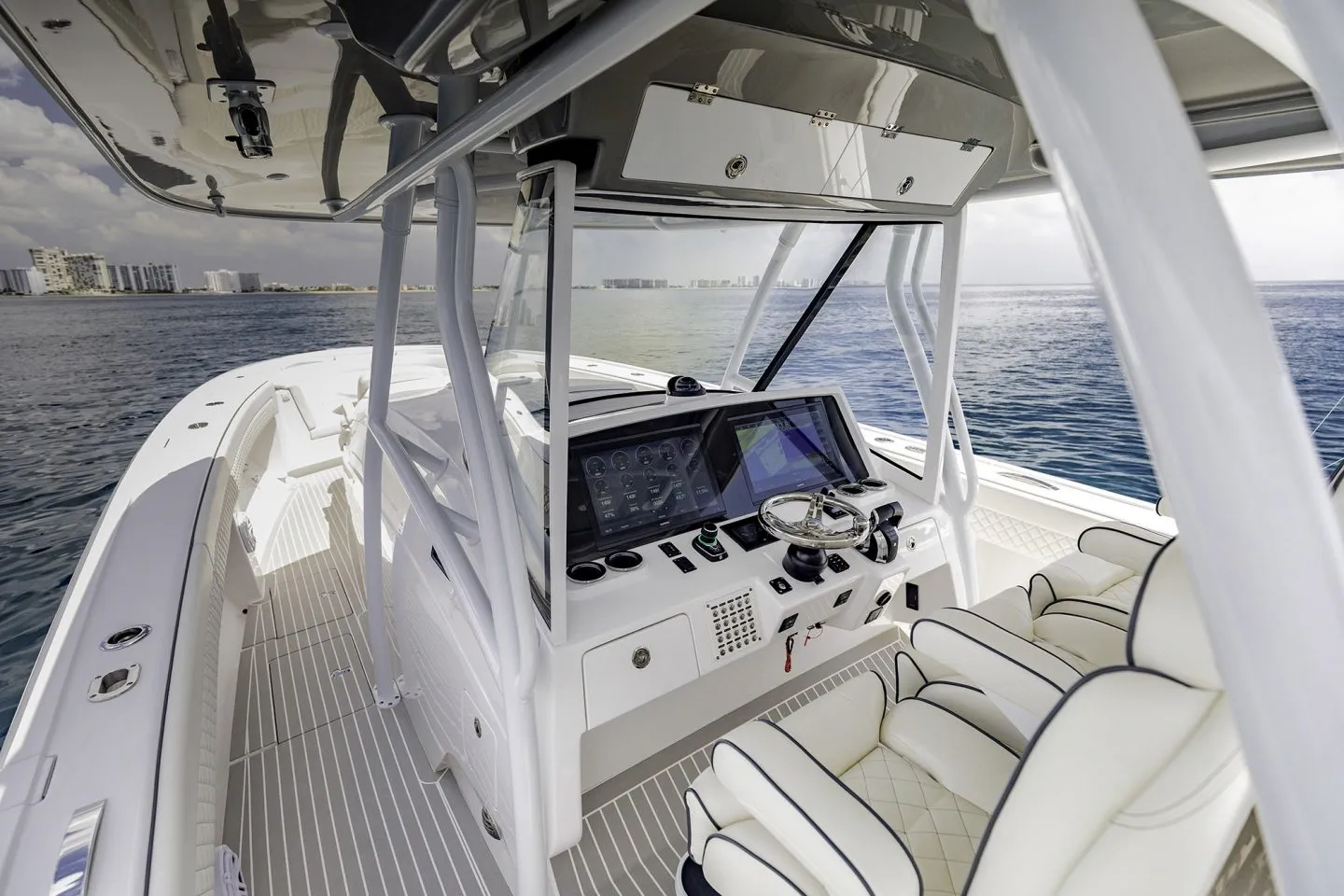 It’s perfectly crafted to battle a 400lb marlin. Or if you prefer to see one face to face, it’s ideal for diving into the depths below to experience them firsthand. The helm features a state-of-the-art platform for electronics, fold-down armrests, footrests, LED lighting and a convenient cooler. An expansive cockpit features rear seating, fish boxes and storage lockers.