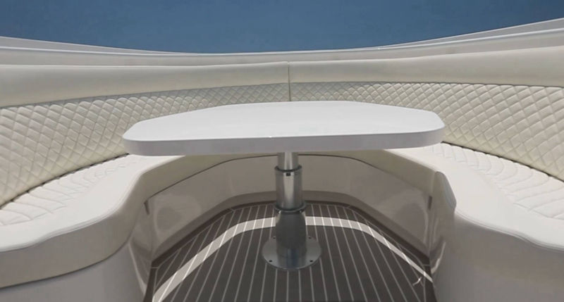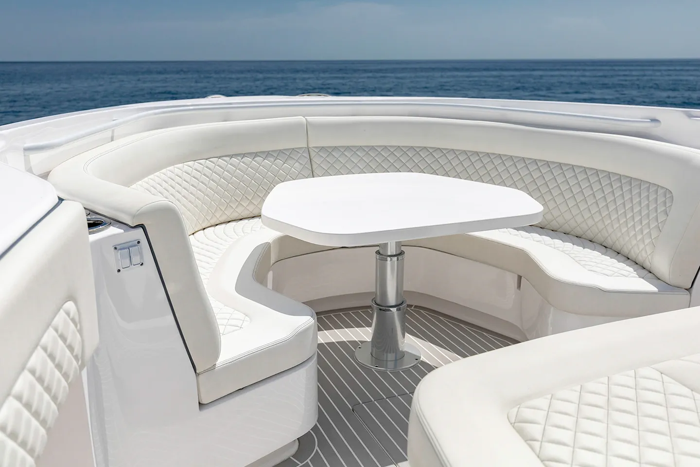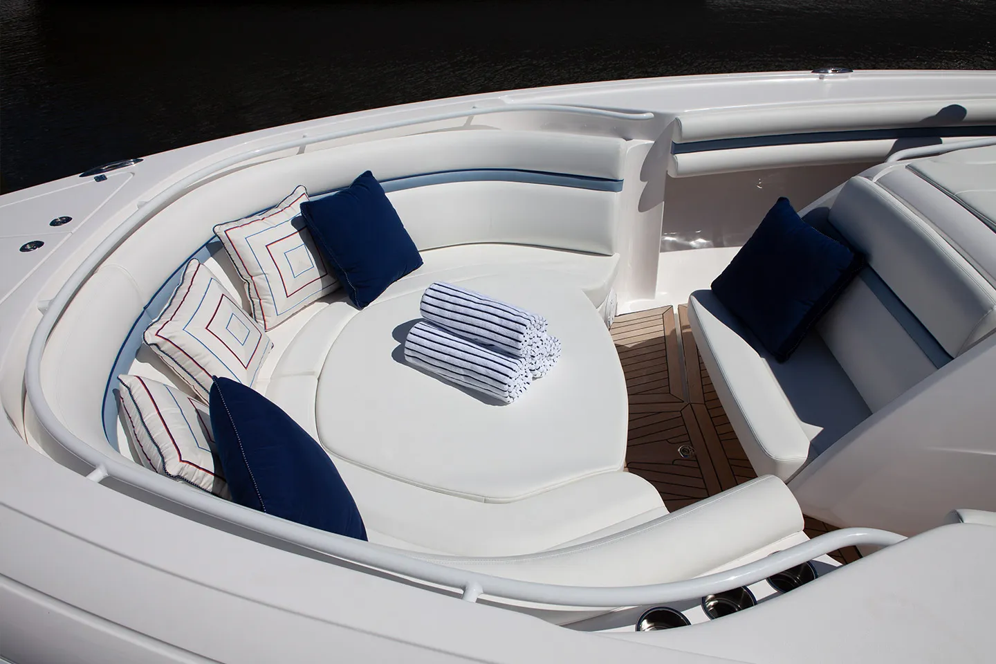 And an oversized sunpad and wraparound forward seating create a VIP lounge that converts to an al fresco dining area.