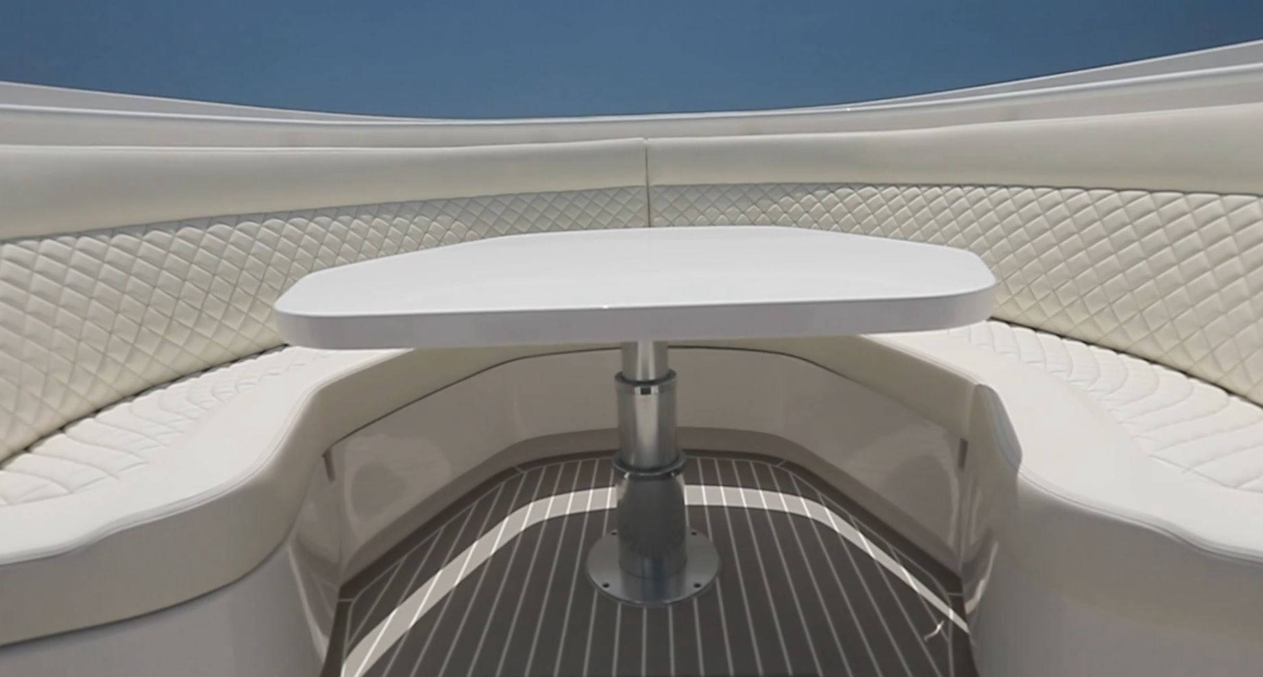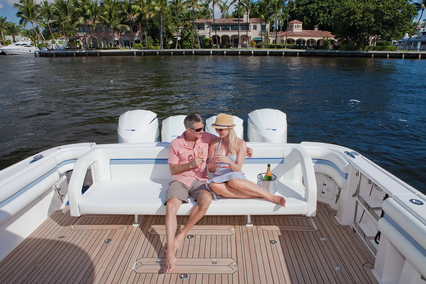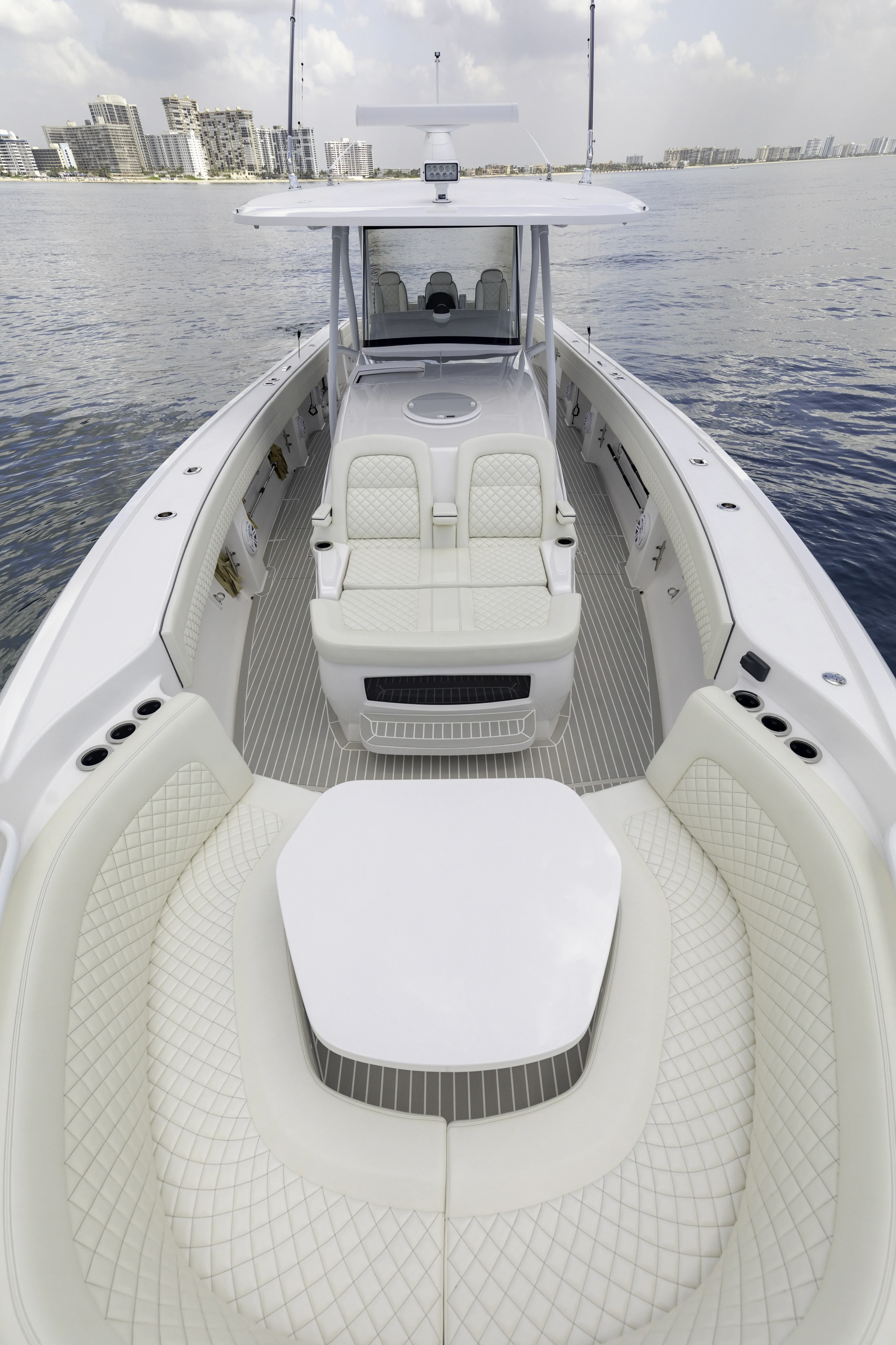 And an oversized sunpad and wraparound forward seating create a VIP lounge that converts to an al fresco dining area.