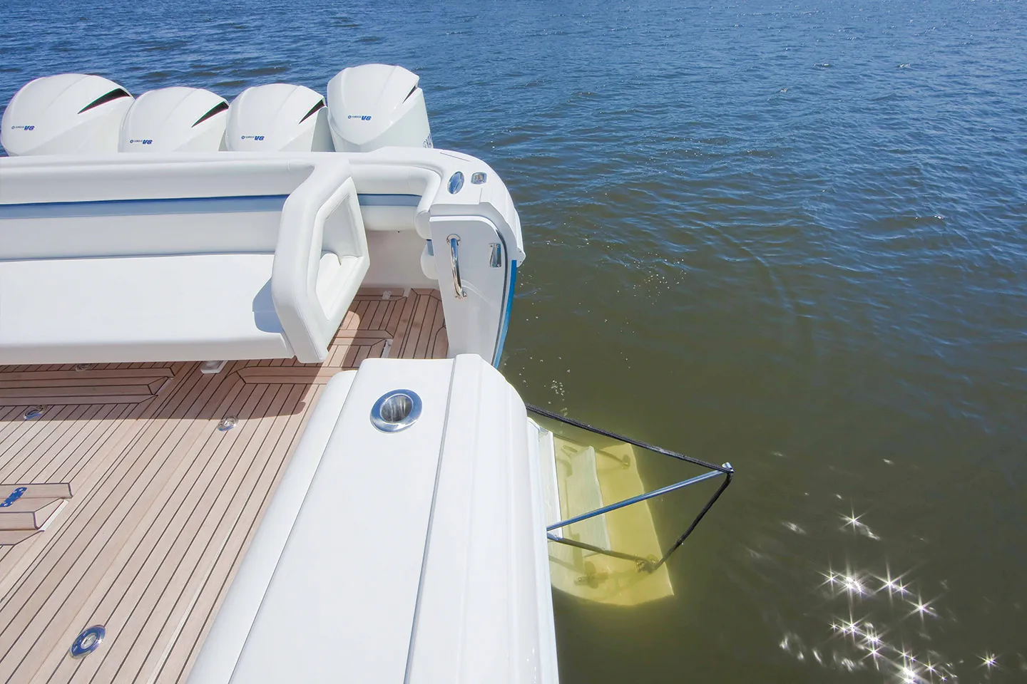 2 Standard dual dive platforms with a single boarding ladder. This fulfills the “means of solo re-boarding” which is a recommendation of the American Boat and Yacht Council; a safety essential other builders forego.