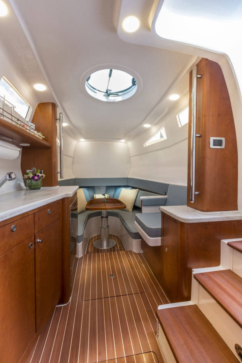 It’s the ultimate day boat that’s also a stay boat without compromising fishability. It features an impressively large cabin without sacrificing cockpit space.