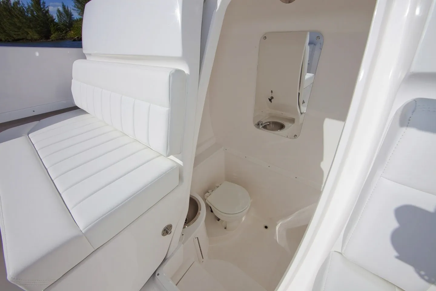 • RE-CIRCULATING LIVE BAITWELL IN COCKPIT SOLE WITH OVERBOARD DRAIN THRU TRANSOM BALL VALVE