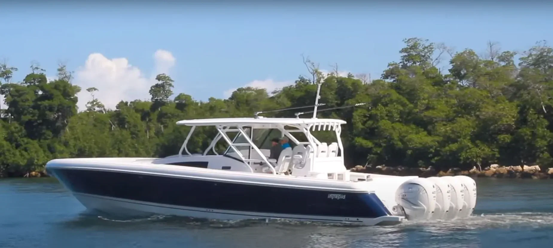 It is a wave-crushing offshore machine that handles both fishing and cruising with luxury and style. Power choices include either triple or quad outboard engines. The 475 Panacea’s signature transverse-stepped hull is designed to maximize fuel efficiency and stability. Effectively creating two separate hulls, the boat is supported on the plane at twice as many points as conventional hulls, providing a smooth, dry ride. Bow rise is minimized, pitching and heeling are reduced, and range is significantly increased.