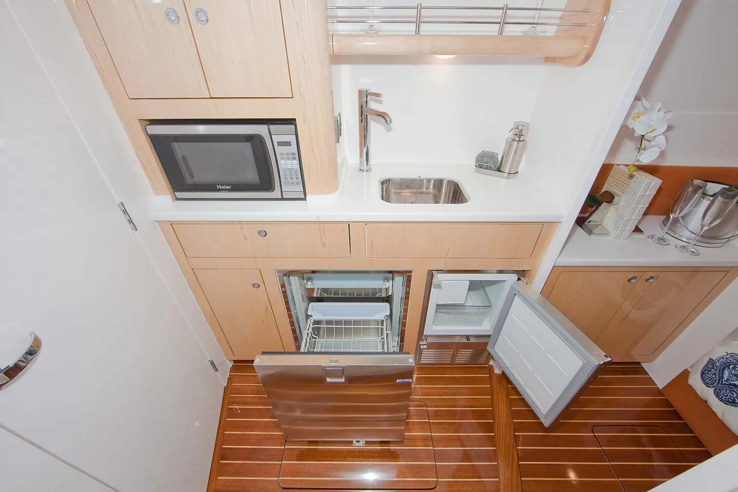 sink and high-end cabinetry and a spacious V-berth for luxurious accommodations.
