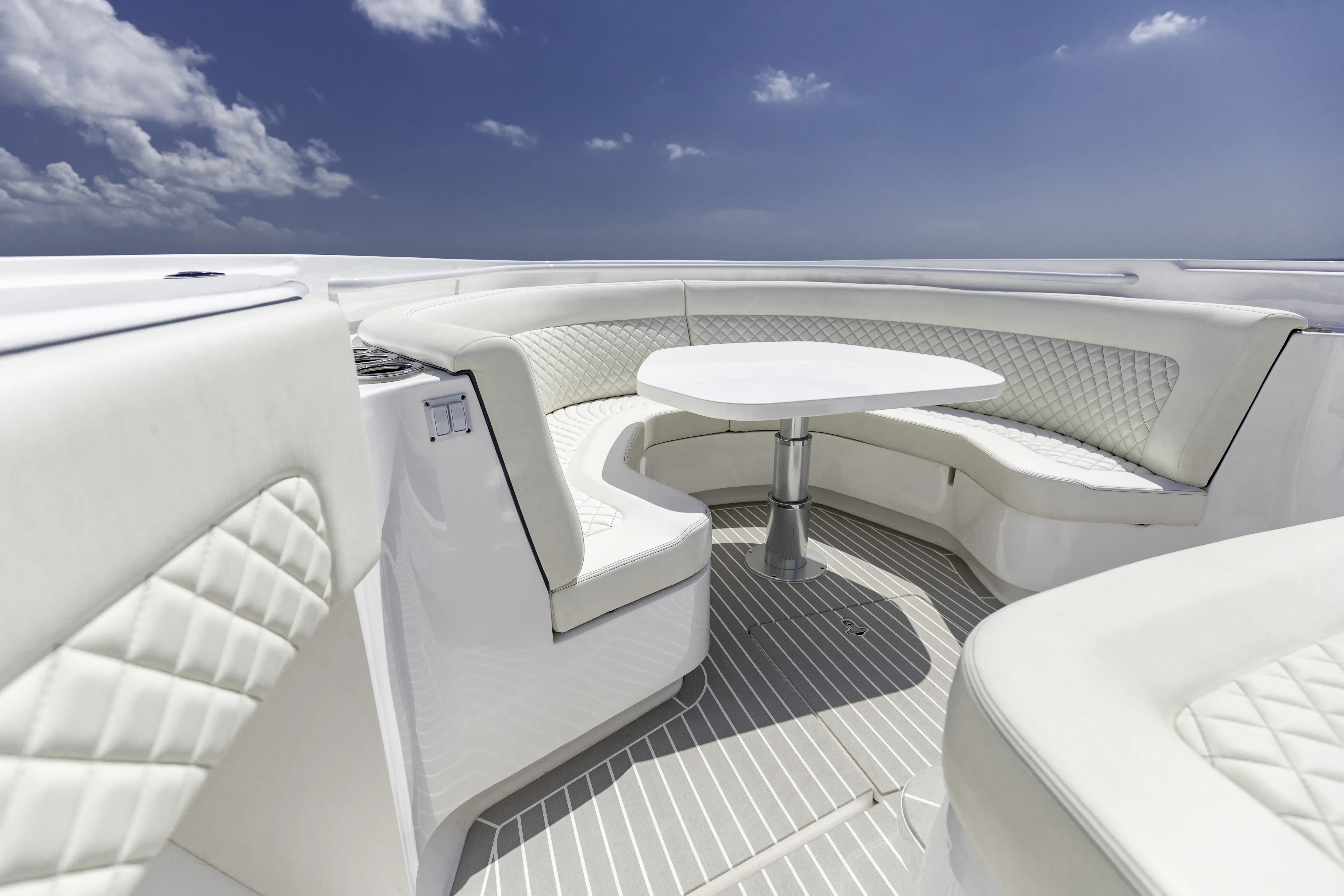 And an oversized sunpad and wraparound forward seating create a VIP lounge that converts to an al fresco dining area.
