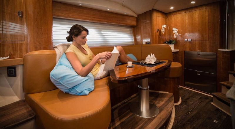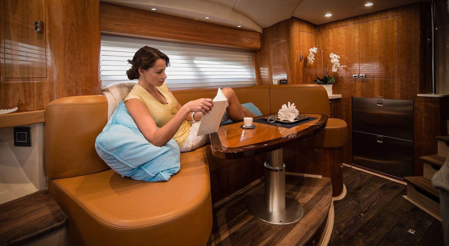 Premier fishability and exquisite entertaining A sure-footed, wave-crushing cruising experience with luxurious overnight accommodations is remarkably versatile. An expansive cockpit features rear seating, fish boxes and storage lockers.